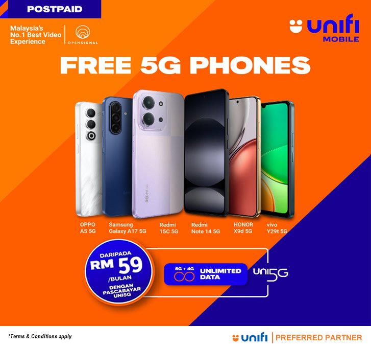 *FREE Uni5 5G Mobile Phone for existing Unifi Customers. "T&C apply. Check NOW!